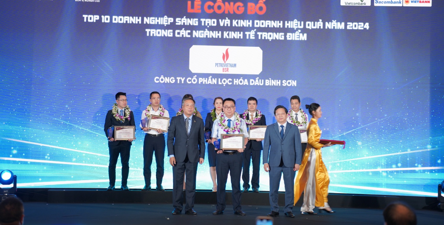 | Công ty CP Lọc Hóa Dầu Bình Sơn được vinh danh trong Top 10 doanh nghiệp Sáng tạo và Kinh doanh hiệu quả Việt Nam trong các ngành kinh tế trọng điểm năm 2024. |